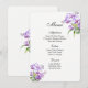 Menykortet visas på en grundläggande papper i vitt med ett vackert lila färg orchids-format. Skript och standardtext i svart. Anpassa menyalternativen genom att klicka på knappen Anpassa redigering, titta på högerna och hitta lämpliga rutor för att ändra informationen.