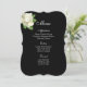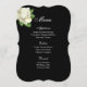 Menykort som visas på grundläggande papper i svart med ett vackert vit ros-utskrift. Skript och standardtext i vitt. Anpassa menyalternativen genom att klicka på knappen Anpassa, leta upp höger och hitta lämpliga rutor för att ändra informationen. Jag önskar dig bäst önskemål för din Bröllopsdag.