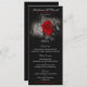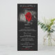 Matchande mina bröllopsinbjudningar i elegant röd ros, det här klassmenykortet. En tidlös, klassisk design med en enda röd ros och baby utandningsbukett med en asymmetrisk mjuk vinjetten kant. Monokrom utom för den isolerade röda färgaden ro.