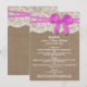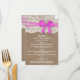 Uppsamlingen av den rustiska rosan bröllop är en bedövande utformning med en vacker, strålande, kompakt bakgrund med en romantisk vintage, vit snöre-effekttrim och en bedövande rosa-båge. Dessa menyer kan vara personligen för ditt särskilda tillfälle och skulle göra perfekten till menyer i bröllop, möhippor, förlovningsfest-menyer, födelsedagsfest-menyer och mycket, mycket mer. *Observera att Zazzle endast säljer tryckta produkter så att den här artikeln inte har något riktigt material för att dölja snöre eller band/ bågar.