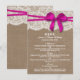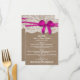 Uppsamlingen av den rustiska rosan bröllop är en bedövande utformning med en vacker, strålande, kompakt bakgrund med en romantisk vintage, vit snöre-effekttrim och en bedövande rosa-båge. Dessa menyer kan vara personligen för ditt särskilda tillfälle och skulle göra perfekten till menyer i bröllop, möhippor, förlovningsfest-menyer, födelsedagsfest-menyer och mycket, mycket mer. *Observera att Zazzle endast säljer tryckta produkter så att den här artikeln inte har något riktigt material för att dölja snöre eller band/ bågar.