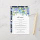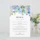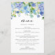 Menykortet Watercolor Blue Hydrangeas Bröllop