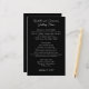 Prisvärd bröllop-meny i neutralt svartvitt. Svarta pappra med vita textmallar har parets namn med menyrubriken överst. Alla menyalternativ läggs till i ett enda stycke. Lägg till blanksteg som du föredrar om du vill jämna ut text. Datum för händelsen ligger grund på papper.