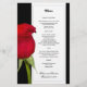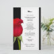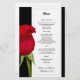 Menymall för röd ros, svart och vitt bröllop. Platt papper är svart med vit ruta som innehåller svart utskriven text. Mycket prisvärd blommigt papper, men ändå vacker design.