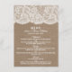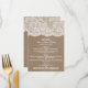 Samlingen av snöre och brännlappar är en fantastisk utformning som har en vacker, rustik, överlappande bakgrund med en romantisk vintage vit snöre-effektstrim. De här menyerna kan vara personlig för ditt speciella tillfälle och skulle göra menymallen för perfekt för alla rustiska bröllop, möhippa, förlovningsfest, födelsedagsfest och mycket, mycket mer. *Observera att Zazzle endast säljer tryckta produkter, så att dessa bord-kort inte har någon riktig överlappning eller snöre-material.