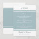 Dessa Anka Egg Blue Modern Menu-kort är perfekt för alla par som planerar ett modernt bröllop firande. Utformningen av eleganten kan vara personlig till kostym för din speciella händelse och kommer att vara perfekt-menyn för alla moderna teman party, inklusive: möhippor, förlovningar, möhippor, födelsedagsfester och mycket mer.