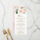 Den här menydesignen i elegant bröllop har vackra blommor med rosa med faux glitter konetti och guld dammaccenter. Genom att samordna kalligrafin i mörk guld får du en bra blommigt.