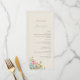 Fira din vår eller sommar bröllop med den här eleganten-menyn för vilda blommor i bröllop med personlig gäst namn överst. En mjuk gräddbakgrund ställer in scenen för romantisk kalligrafi och modern serif typsnitt, medan en pulserande vattenfärgsbukett av rosa, gult och blåblommor tillför en ny säsong-beröring till basen. Perfekt för trädgårdsbröllop, utomhusmottagningar eller land-stil firande. Redigera enkelt menyinformationen och gäst namn så att den matchar din händelse.