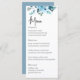 Elegant vår dammig blåvit blommigt bröllop-meny. Gratulera till kärlek med det här anpassadet vår bröllop-svit, med en tidlös, dammig, blå och vit blommigt. Fintliga blommigtar och mjuka nyanser skapar ett romantiskt och sofistikerat utseende, perfekt för ett vår- eller trädgårdsbröllop. Ställ in tonen för din speciella dag med en vackert designad blommigt bröllop som reflekterar ditt stil.