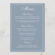 Menyn elegant Dusty Blue White Script Bröllop Meny