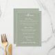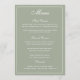 Ett elegant som visar gästerna deras menyalternativ. I grönt med vitt skrivet. Ett bröllop-teckensnitt med elegant har kombinerats med ett modernt teckensnitt med versaler i stil som skapar en snyggt, men ändå en användarvänlig bröllop-meny.