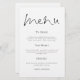 Storlek 5,5 x 8,5 tum på budgetpris. Den här moderna designen har Menu i elegant satt skript överst och resten av texten centrerad under vilken du enkelt kan anpassa dig och namn och bröllop datum bakåt. Text- och bakgrundsalternativ på båda sidor kan ändras till valfri färg med hjälp av alternativet Anpassa ytterligare.