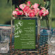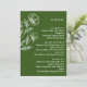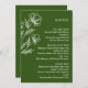Bröllop-menyn i en enkel grönt med illustrationer av blommigten.