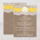 Bröllopsamlingen i gult och dollar är en fantastisk design med en underbar rustik-överlappningseffekt med en romantisk vintage vit snöre-effekttrim avslutat med en bedövande sand-dollar och ett gult-band. De här menykorten kan vara personlig för ditt särskilda tillfälle och skulle göra perfekten till menyer i bröllop, möhippa-menyer, förlovningsfest-menyer, födelsedagsfest-menyer och mycket, mycket mer. *Observera att Zazzle endast säljer tryckta produkter så att den här artikeln inte har något riktigt material som täcker snöre, sand-dollar eller band.