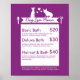 Inga fler gömmande priser och tjänster för din växande salon! Använda den här trimningsmenyn poster för att visa alla de trimningstjänster som din salon tillhandahåller - och gör det enkelt för kunder att uppgradera! Vill du lägga till eller ändra något i designen? Du kan ändra den befintliga texten till ANYTHING du vill ha! Klicka bara på knappen CUSTOMIZE och redigera all text och lägg enkelt till egna tjänster och priser. I redigeraren kan du till och med ändra teckensnittstyp, bakgrund och teckensnitt färg! Den här trimningsmenyn i hund ingår i en marknadsföring-verktygslåda - en serie matchande marknadsföring-objekt, inklusive poster och affärskort som finns i vår butik.