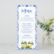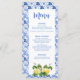Modern blå Gult Tile Lemon Menu Mest blå och vit Medelhavsbricka och citronmeny med blå text.
