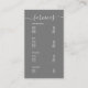 Affärskortet Modern Elegant Simple Grått Spa Salon Service Menu. Anpassa det här moderna grått-menyaffärskortet för elegant för att enkelt skapa en pris lista för dina tjänster. Perfekt för hårsalonger, nagelsalonger, lash extension and makeup artist services, skönhet pub, spas, esteticiertjänster m.m. Kontakta oss om du behöver hjälp: yourstyle@pgco-designs.com.