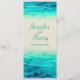 Vackra blå grönt målade hav med grafisk vinkarare gnistra överlägg på bröllop-menyn. En vacker strand, ett kusthav inspirerat, contemporary, en bröllopsinbjudning med ett unikt stiliserat, handvattenfärdigt hav på en färg-papper. Perfekt för ett modernt badbröllop. Redigera den här inbjudan med din egen ord. Unik designad och målad av Sarah Trett.