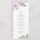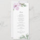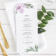 Den här menyn med blommigt på eleganten innehåller färgade löv och blommor med vattenfärg. Blommigtarna och grönenergin görs i ljusa pastellfärgers rosa och grönt mot en skarp vit bakgrund. Namn och menyn för brud och stam är inställda i ett klassiskt modernt sans serif-teckensnitt. Den här dubblan är en blommigt för vår, sommar-, fall- eller vinterbröllop, seminners och förlovningsfester. Designad av Victoria of VG Inbjudningskorts. Om du vill se fler menykortsutformningar som den här www.zazzle.com/vginvites