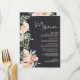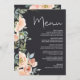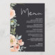 Menyn Peach Grönt Navy Pastel Blommigt Bröllop Meny
