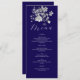 Ange en sofistikerad ton vid mottagningen med royalets blå bröllop-meny med delikat silver blommigt-grafik och elegant-kalligrafi. Perfekt för formella vinterbröllop belyser den här förfinade designen dina val av måltider i anpassningsbarna i en ren och elegant layout.
