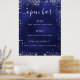 En marin blå bakgrund, blå färg är ojämn. Dekorerad med faux silver glitter, gnistor. Med texten: Öppna pub. Anpassa och lägg till menyn pub. Vit text.