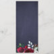 Blommigt röd burgundi och vita ponnyer med säsong gräs grönt fir grenar, röda bär och bladbukett skapar ett elegant bröllop-menymdkort TEMPLAT på mörken vid midnatt, blå krita. Idealisk för vinterjulens elegant blommigt bröllop eller annat party.
