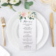 Menykort för elegant bröllop med färgade vattenblommor i rosa, vit och grönt löv. Om du vill ha en mer avancerad anpassning av den här designen klickar du på knappen Anpassa. Matchande objekt är också tillgängliga.