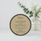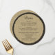 Snöflingan är utformad på en rustik vinter, liten, rund meny med mörk brun text. Anpassa text som du vill och lägg till namn eller annan text på baksidan av bruden och trimningen.
