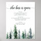 Inbjudan gäster för att ta en favoritlibation från pub med vår charmerande rustik bröllop pub-menyskylt. 11x14 poster ett gräns grund med vattenfärgen gräs träd i rik med jägare och skogarnas grönt, med "pub är öppet" i mörkt kalligrafi och blockering. Anpassa med dina vin-, öl- och spritval under. Designad för att matcha vår Timber Grove-samling för höst- eller vinterbröllop i skog- eller skogsområden.
