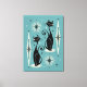 Meow Retro Atomic Cats on Blue Canvastryck
