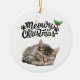 En festlig prydnadsändamål med en söt "Meowy God Jul"-katt som sover. Det är den perfekta gåvan för kattälskare och ägare som söker färgstarka, öga-fångstande och unika kattformar som kan vara personlig med namn i katten mellan päls och baby. Oavsett om det är din nya katts första jul eller om du bara vill minnas din älskade katt som har passerat, är detta prydnadsföremål ett värdefullt sätt att fira deras liv. Beställ din i dag!"