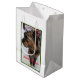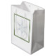 Ställe din gåva i väskan som innehåller budskapet "Meowy jul" med ett foto av en katt med en julklapp på dekorationen. Du kan ändra fotot till ett eget om du vill. På baksidan är en fraktal snöflake. Grönt gräns på vardera sidan kontrasterar med vit bakgrund och röd skrift.