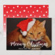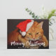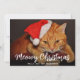 Meowy jul kattfoto katt med röd tomteluva julkort