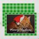 Meowy julkattsfoto & -text på grön rutmönster julkort