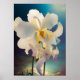 Den fascinerande biet i fantasi-bildåtergivningen visar en vit iris med bakgrunden till blått och gult lugn vatten. Vilken fantastisk biet av konst du kan visa upp hemma eller på kontoret.