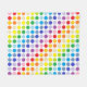 Abstrakt digital konst av regnbågepolka dots färgar allra inklusive rosor, rött, guld-, orange, ecru, gult, limefruktgrönt, grönt, pastellfärgade blått, turkos, blåttgrå färg, indigoblått, lavendel, lilor och vit.