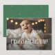 Mer glädje i år! Om din jul är mycket gladare i år än tidigare, är detta det perfekta julkortet för dig. Med ett foto och rolig lekfull text är det ett bra sätt att visa upp din familj och skicka julhälsningar. Det finns gott om utrymme för anpassad text och den gröna baksidan är prydd med matchande stjärnor och prickar. Den gröna färgen kan justeras till valfri färg genom att klicka på "anpassa ytterligare".