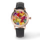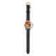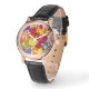 Denna kvinnoklocka har en utformning av en hög av löv i grönt, gult, orange, blått, brunt och rött på fält i gulten blek.