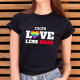 Mer Kärlek mindre Hate Bold Rainbow Heart på svart T Shirt