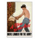 Vinatge Världskrig II homefront lumber production poster "A Blow to the Axis ~ More Lumber for the Army" av Harold Von Schmidt, 1943.