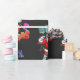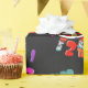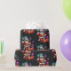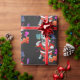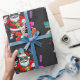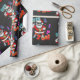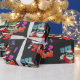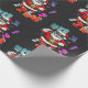 This wrapping paper design features a fun and vibrant Christmas theme. At the center, there is a cool, modern Santa Claus wearing sunglasses, sneakers, and a red outfit with colorful geometric patterns. Santa is striking a confident, dancing pose with one fist up and the other bent at his waist.