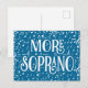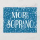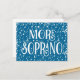 En rolig och glad More Soprano-design med blå bakgrund, vit text och notskrift.