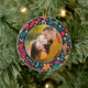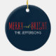 Flera färg-löv mönster med marin bakgrund och foto. Den här prydnaden har både Merry och Bright på baksidan och monogrammet.