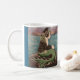 En sjöjungfru katt sitter på en sten vid havet