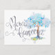 Merci Beaucoup (Fransk) Engelsk översättning: Tack så mycket. Meddelande i elegant med kort handskript. Vacker vattenfärg träd med blå löv och blommor i bakgrunden.