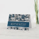 Merci beaucoup eller i andra ord, tack på det Fransk språket med ett tomt insida på detta hälsningskort för ditt eget budskap, och ett underbart blad mönster i fetstil med medelblått, vitt och svart.