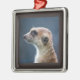 Den här söta och lekfulla meerkat skulle kärlek en ställe höger på Julgran. Meerkats är inhemska för öknar och gräsmarker. Deras bushi, brunstrimlade päls, lilla, spetsiga ansikte och stora ögon ge har ett utmärkande utseende. Bilden är omgiven av ett taupiskt brunt och ramad i silver färgad metall. Baksidan är hela metall.