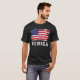 Den här bilden har en vågrät amerikansk flagga med ett bekymrat, grymt struktur överst. Det blå fält med vita stjärnor är på den lämnat, och det röda och vita randen sträcker sig till högerna, allt med en sliten, bleknande effekt. Under flagga är ord "MERICA" i fet stil, versal och något texturerad vit stil.