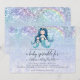 "Mermaid Blå Glitter Regnbåge Babyflicka Strössel Inbjudan till babyfest." Blått glitter med pastell regnbågsglitter med en havsfrumma mamma och dotter. Designad av internationellt känd och licensierad konstnär, Audrey Jeanne Roberts. Upphovsrätt.